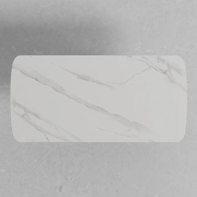 79'' White Sintered Stone Top Rectangle Modern 8 Seater Dining Table Antique Brass X-Base