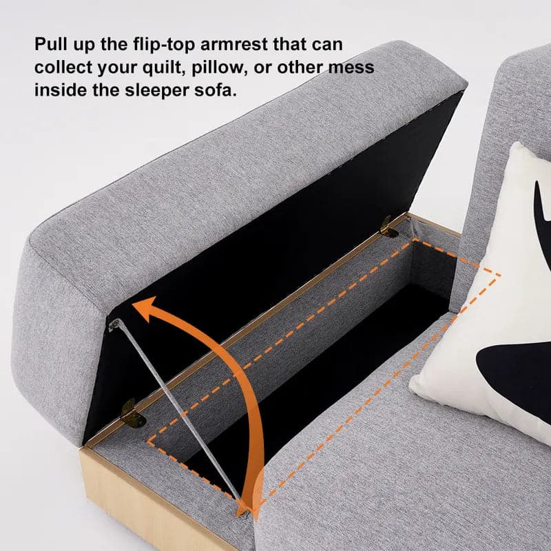 80.7" Gray/White Modern Full Sleeper Convertible Sofa with Storage