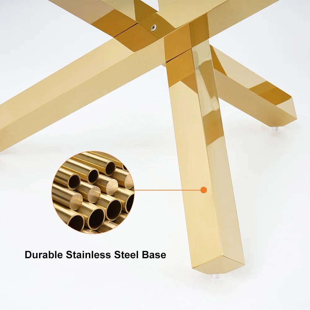 95" Modern Glass Dining Table with Double Pedestal in Gold