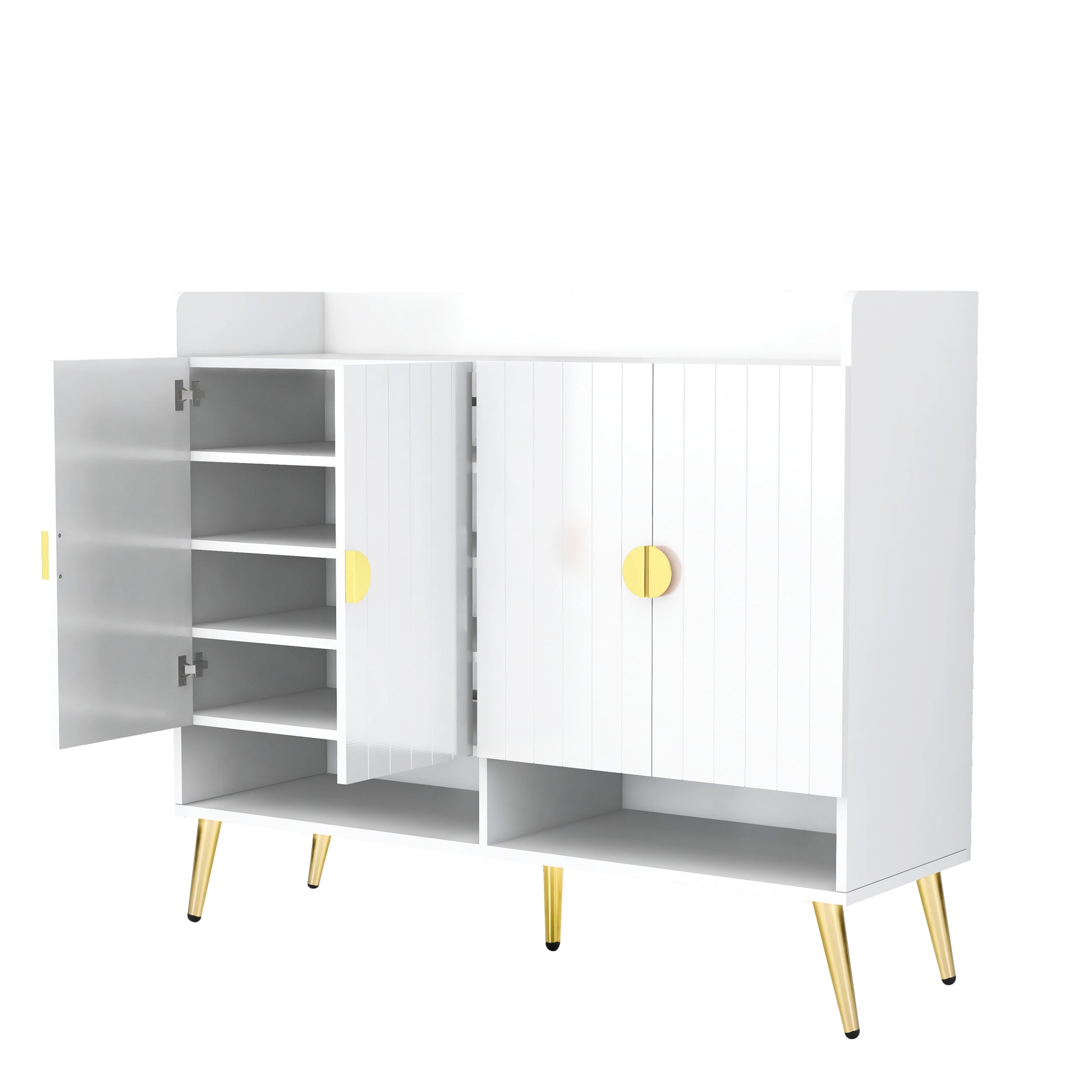 With apron design, this shoe storage cabinet is a stylish and functional furniture piece which perfectly fits any decor of your home. It is constructed with high-quality wood, providing durability and sturdiness to hold numerous pairs of shoes. The cabinet is equipped with multiple adjustable shelves or compartments, allowing you to neatly organize and store your shoe collection. The apron design adds a unique flair to the cabinet, making it a versatile choice for various interior design styles. Whether it's placed in an entryway, bedroom, or closet, this modern shoe storage cabinet blends seamlessly into any space.