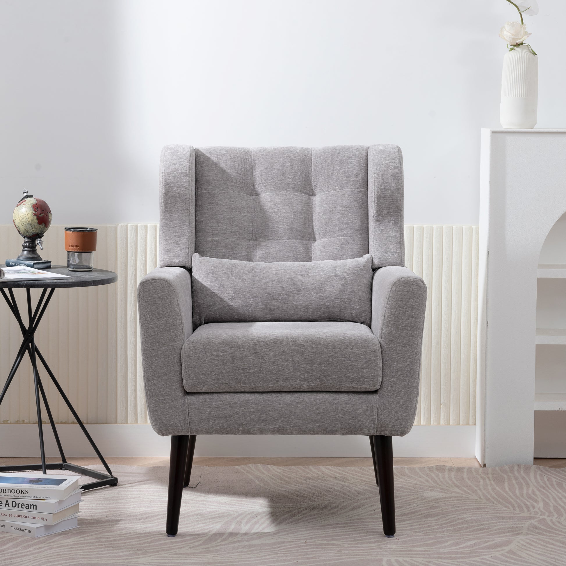 Modern Accent Chair,Chenille Arm Chairs for Living Room,Upholstered Mordern Armchair,Comfy Soft Padded Lounge Chair in Small Space, Bedroom, w/Pillow, Solid Wood Leg (Gray)