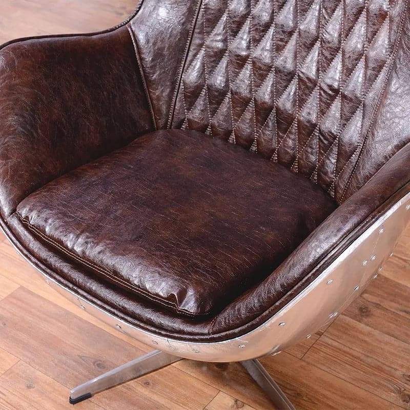 Brown & Silver Office Chair Upholstered Leather Swivel Task Chair with Wing Back