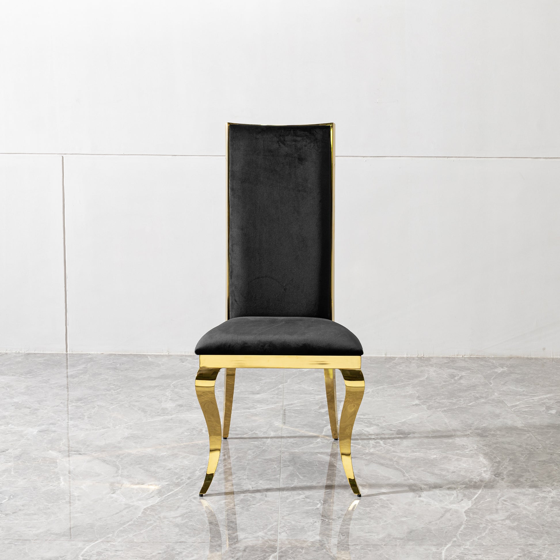 Dining chair black velvet with unique design backrest set of 2,mirror gold stainless steel legs