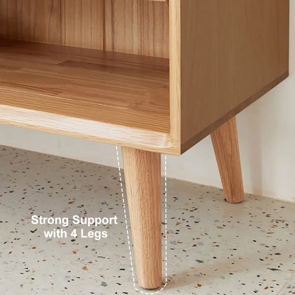 A beautiful blend of Farmhouse style and modern practicality, the shoe cabinet can elevate any home. 2 doors and 4 shelves offers you ample space to organize the shoes up to 15 pairs. Rattan woven design lets this item be well-ventilated and gentle. Premium rattan and solid wood frame ensure sturdy support. Fantastic utility, along with a unique and eye-catching aesthetic, distinguishes the shoe cabinet as an exceptional addition to any entryway.