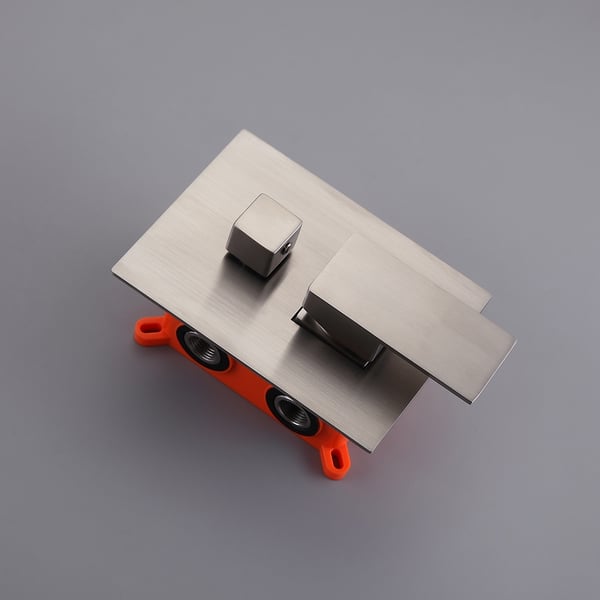 With the ultra-contemporary styling, Dree Faucet Collection features 90 Degree that brings a clean, minimalist aesthetic appeal to your home. Featuring a square rain shower head, this shower system from Dree Collection provides luxurious shower experience and soothing, refreshing enjoyment. Equipped with the hand shower kit, it offers extended reach and maneuverability to aim the water to your skin and complement your rinsing needs. And a tub spout fixing at the bottom, makes the filling of a tub and washing of feet, pets a breeze. Coated in a refined brushed nickel finish, it will add a simple, yet upscale look to your bathroom.