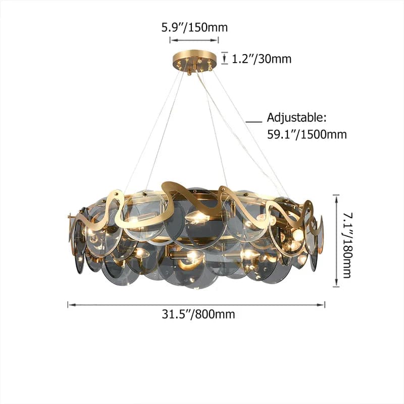 Modern 10-Light Smokey Gray Glass Chandelier with Adjustable Cables