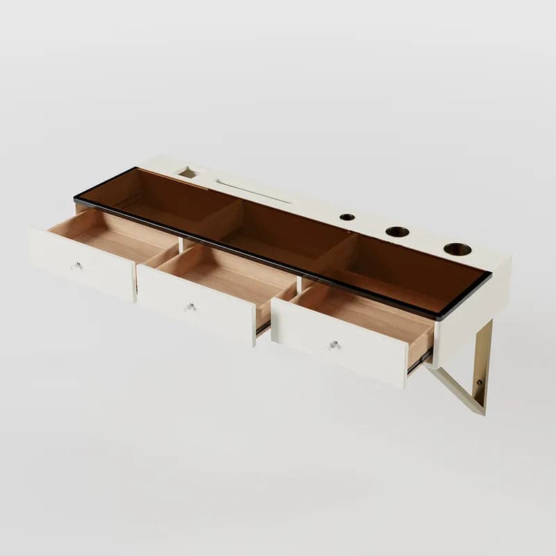 Modern Floating Makeup Vanity Tempered Glass Top Wall Mounted Beauty Station