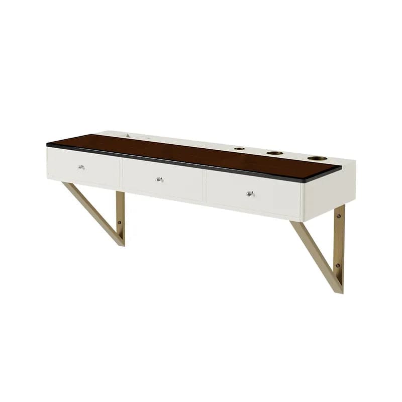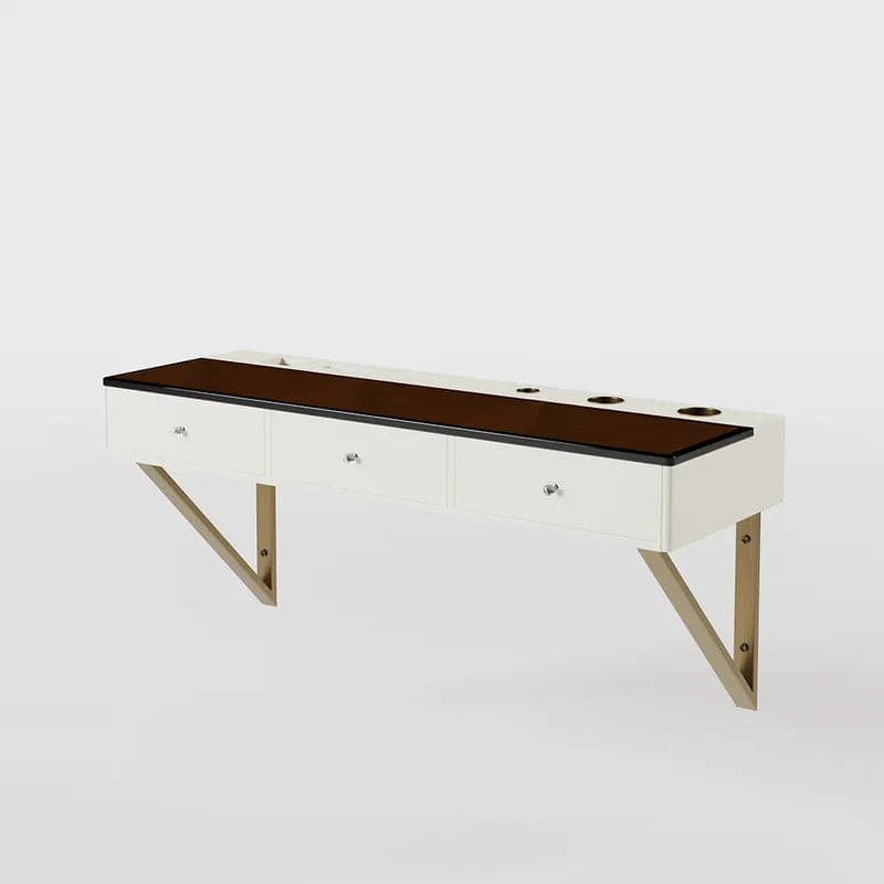 This floating makeup vanity delivers all the features you need to get your daily makeup done. Features with wall-mounted design and amber tempered glass top, different sizes of cutouts to cradle electric hair accessories, let alone ample storage of 3 drawers for your cosmetic products. The top panel can hold a phone or tablet, which is perfect for watching videos while doing makeup.