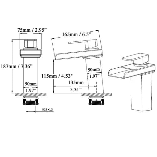- Suitable for single hole sink mounting.