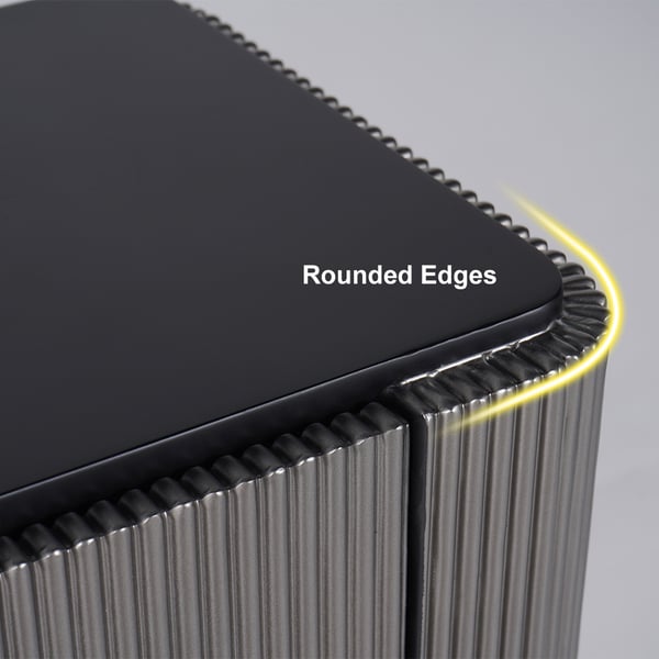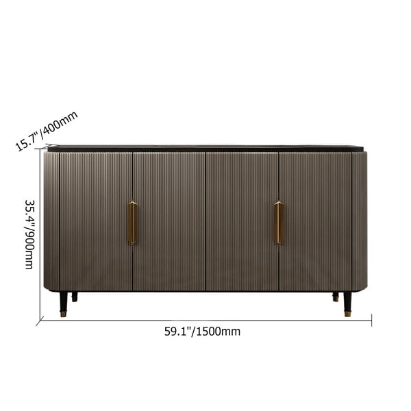 This sideboard buffet takes on a luxurious and underestimate look. Comes with a classic black tabletop, it offers plenty of space to stage framed photos, artful accents, and beyond. 4 large doors help to organize your glassware, plates, platters, and table linens. Crafted from the sturdy wood frame and stainless steel base, it allows long-lasting service for timeless beauty. The perfect pick for your kitchen!