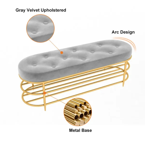 Modern Upholstered Bench Gray Velvet Bench with Shelf Bench with Shoe Storage