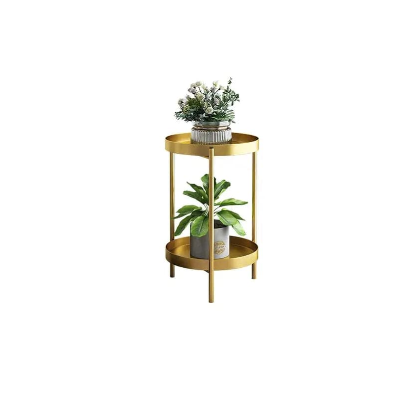 Round Metal Plant Stand 2-Tiered Gold Plant Pot Stand for Indoor in Small